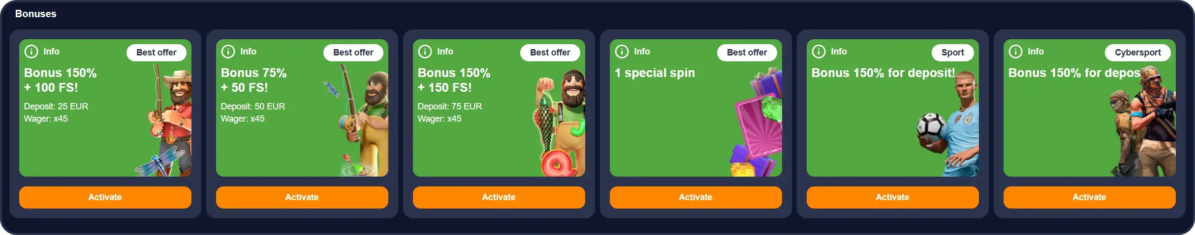 Monday Cashback: 15% rebate on net weekly losses, with 1x–2x wagering requirement